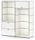 Avec le système modulaires USM, différents types de meubles peuvent être construits à partir de trois éléments de base. L'ossature est constituée de tubes métalliques, des boules métalliques chromées forment leur jointure et de parois métalliques ou en verre s'insèrent dans l'ossature formant ainsi le revêtement. La gamme s'étend des simples constructions d'étagères, au buffet comme le populaire Sideboard USM Haller en passant par les tables et les caissons mobiles jusqu'aux penderies modernes. À l'origine, l'architecte Fritz Haller a développé les meubles USM en tant que mobilier d'intérieur pour les nouveaux bâtiments USM. C'était au début des années 1960. Avec la première grande commande faite par la Bamque de Rothschild pour son ameublement à Paris, la production en série a commencé en 1969 et l'histoire à succès d'USM Haller commença pour se poursuivre jusqu'à ce jour. Les étagères USM Haller se distinguent par leur caractère modulaire et leur design minimaliste. L'effet d'élégance classique créé par les différentes surfaces brillantes et la structure clairement définie est également typique.