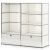 Avec le système modulaires USM, différents types de meubles peuvent être construits à partir de trois éléments de base. L'ossature est constituée de tubes métalliques, des boules métalliques chromées forment leur jointure et de parois métalliques ou en verre s'insèrent dans l'ossature formant ainsi le revêtement. La gamme s'étend des simples constructions d'étagères, au buffet comme le populaire Sideboard USM Haller en passant par les tables et les caissons mobiles jusqu'aux penderies modernes. À l'origine, l'architecte Fritz Haller a développé les meubles USM en tant que mobilier d'intérieur pour les nouveaux bâtiments USM. C'était au début des années 1960. Avec la première grande commande faite par la Bamque de Rothschild pour son ameublement à Paris, la production en série a commencé en 1969 et l'histoire à succès d'USM Haller commença pour se poursuivre jusqu'à ce jour. Les étagères USM Haller se distinguent par leur caractère modulaire et leur design minimaliste. L'effet d'élégance classique créé par les différentes surfaces brillantes et la structure clairement définie est également typique.