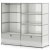 Avec le système modulaires USM, différents types de meubles peuvent être construits à partir de trois éléments de base. L'ossature est constituée de tubes métalliques, des boules métalliques chromées forment leur jointure et de parois métalliques ou en verre s'insèrent dans l'ossature formant ainsi le revêtement. La gamme s'étend des simples constructions d'étagères, au buffet comme le populaire Sideboard USM Haller en passant par les tables et les caissons mobiles jusqu'aux penderies modernes. À l'origine, l'architecte Fritz Haller a développé les meubles USM en tant que mobilier d'intérieur pour les nouveaux bâtiments USM. C'était au début des années 1960. Avec la première grande commande faite par la Bamque de Rothschild pour son ameublement à Paris, la production en série a commencé en 1969 et l'histoire à succès d'USM Haller commença pour se poursuivre jusqu'à ce jour. Les étagères USM Haller se distinguent par leur caractère modulaire et leur design minimaliste. L'effet d'élégance classique créé par les différentes surfaces brillantes et la structure clairement définie est également typique.