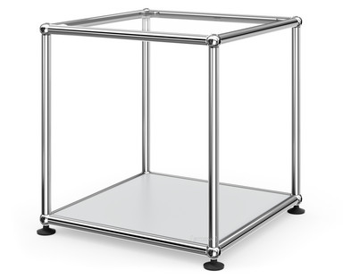 Table d'appoint 35 USM Haller, Panneau supérieur en verre, panneau inférieur en métal, Argent mat USM