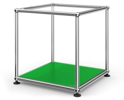 Table d'appoint 35 USM Haller, Panneau supérieur en verre, panneau inférieur en métal, Vert USM