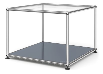 Table d'appoint 50 USM Haller, Panneau supérieur en verre, panneau inférieur en métal, Gris moyen RAL 7005