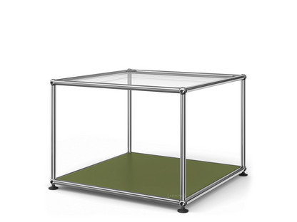 Table d'appoint 50 USM Haller, Panneau supérieur en verre, panneau inférieur en métal, Vert olive RAL 6003