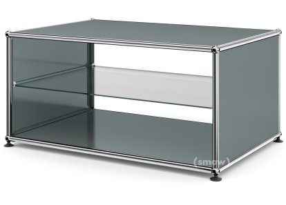 Table d'appoint avec panneaux latéraux USM Haller, 75 cm, Avec tablette intérieure en verre, Gris moyen RAL 7005