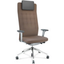 ID Trim L, Mécanisme Flowmotion avec réglage de la profondeur d'assise, Avec supports d'accotoirs en aluminium poli, Noir basic, Tissu Plano coffee, Souples pour sols durs