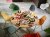 (Chaise de salle à manger avec coque et piètement en tiges d'acier et revêtement)