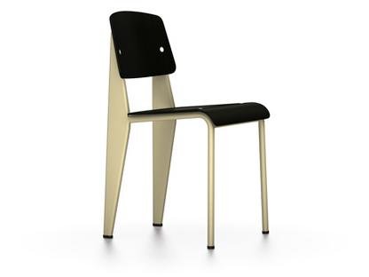 La conception et la réalisation de la chaise Standard SP par Vitra ont été pensées par Jean Prouvé et sont issues d’une réflexion sur la stabilité et la statique. Effectivement, après des observations et recherches, Jean Prouvé constate que la majorité du poids du corps, donc de sollicitation d’une chaise, se situe au niveau des pieds arrière. Prouvé décide d’accentuer ces derniers et renforce la structure en créant au niveau des pieds arrière une forme triangulaire à partir d’une épaisse tôle d’acier. L’avant du piètement sera alors simplement en tubes d’acier. Se basant sur des principes physiques, Prouvé introduit, avec cet élément qu’est la statique, une notion ayant une répercussion directe sur l’esthétique de l’objet. La chaise se trouve ainsi à la frontière entre l’architecture et le design d’objets. Ici, le modèle SP (siège en plastique) est fabriqué avec le dossier et l’assise en matière synthétique robuste ASA tandis que la version originale Standard possède un dossier et une assise en bois. L’ensemble du piètement, quelle que soit la version, reste, en revanche, inchangé en tôle et tubes d’acier. Tout comme la chaise Standard de Jean Prouvé, la Standard SP fait également partie de la garantie du fabricant Vitra.