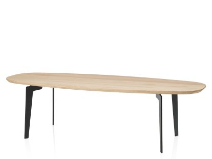 En créant sa « Noguchi Coffee Table », Isamu Noguchi, qui n’était pas seulement designer, mais également sculpteur, est parvenu à répondre aux exigences de ces deux disciplines en même temps. Il considérait lui-même cette table comme sa création la plus réussie. Cette dernière se distingue par une forme organique qui, malgré son apparence légère, reste très solide. La construction repose sur deux pièces de bois identiques mais disposées de façon symétrique, opposée et à angle droit. Elles soutiennent un plateau en verre de 19 mm d’épaisseur en forme de goutte. L’ensemble apparait, au premier abord, comme une véritable sculpture mais ne reste pas moins fonctionnel. Isamu Noguchi a créé le premier modèle de ce classique du design Vitra dans les années 1930 pour le président du Museum of Modern Art de New York, A. Conger Goodyear. Celui-ci reposait toutefois sur des supports en bois de rose reliés entre eux et il fallut attendre 1944 pour voir apparaitre la forme de la « Coffee Table », telle qu’elle est aujourd’hui produite par Vitra.