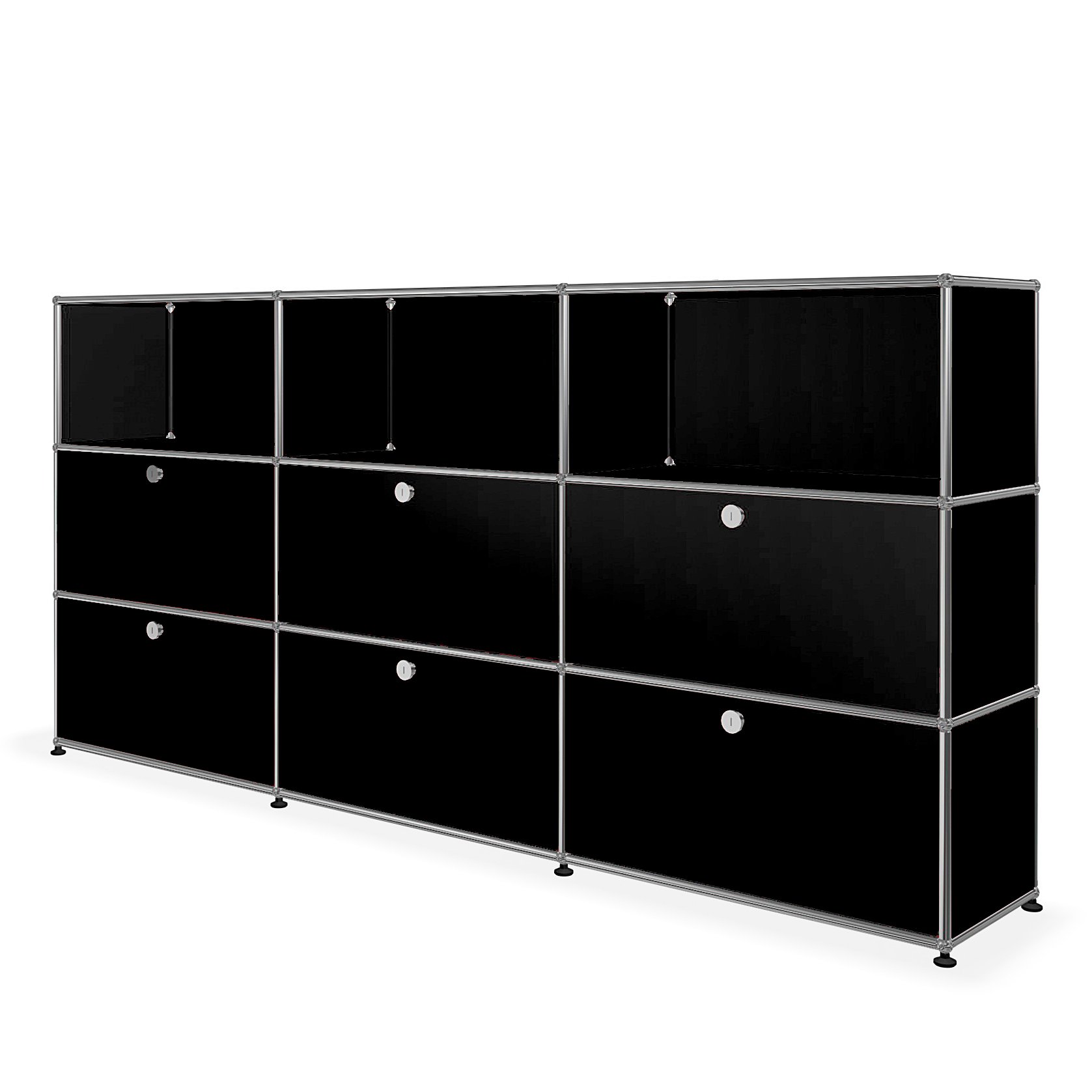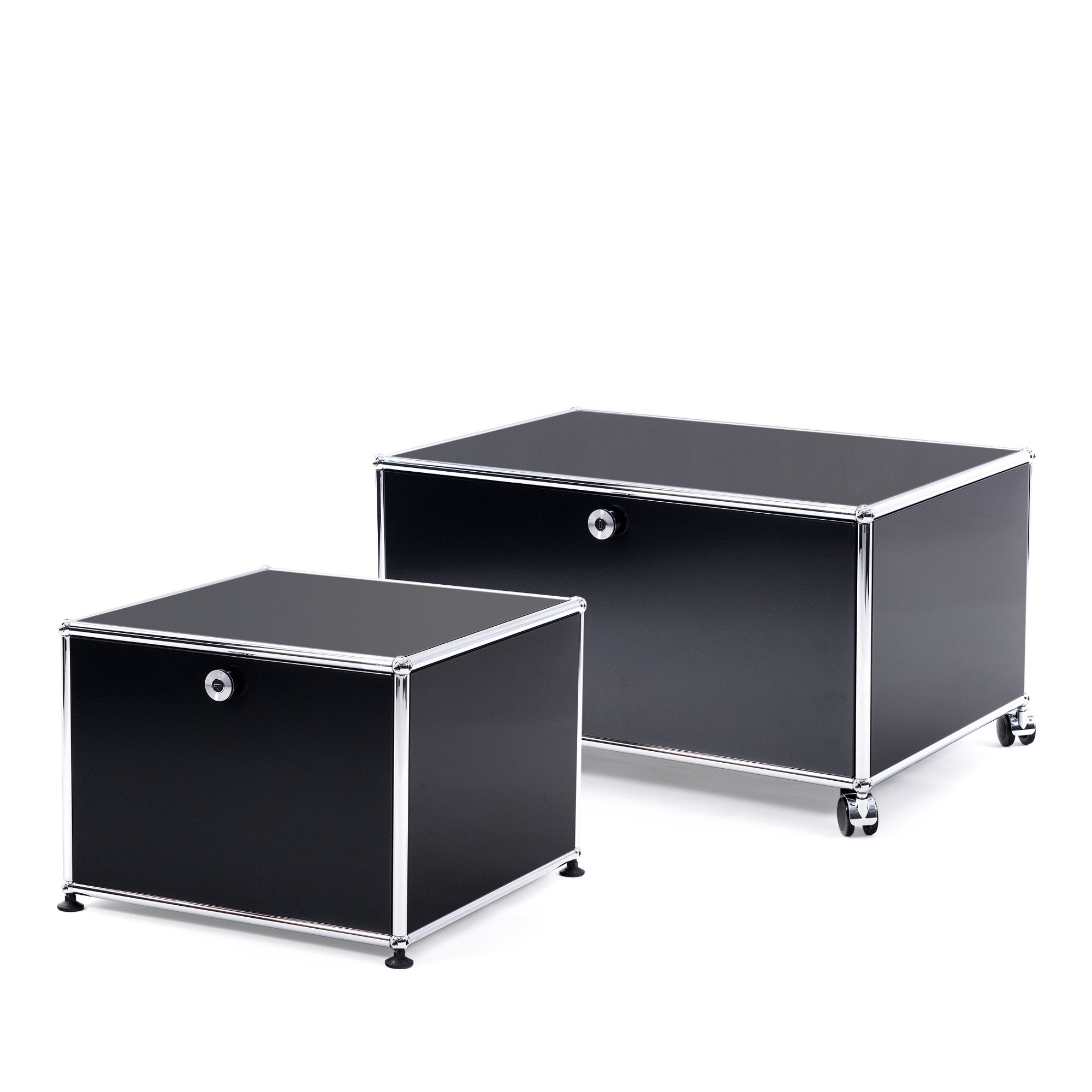 Pour les événements, les présentations et les réunions internes, le client souhaitait un espace multifonctionnel flexible. La salle devait pouvoir accueillir jusqu'à 80 sièges et comporter des tables réglables en hauteur qui pouvaient être utilisées comme de longues tables ou à différentes hauteurs. Le concept s'est également concentré sur un aménagement intelligent de la pièce à l'aide d'éléments de cloisonnement et sur l'intégration d'un projecteur à courte portée dans un meuble USM existant.